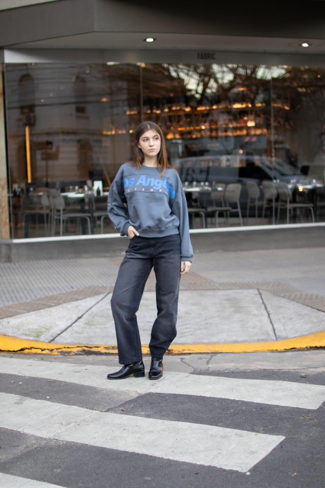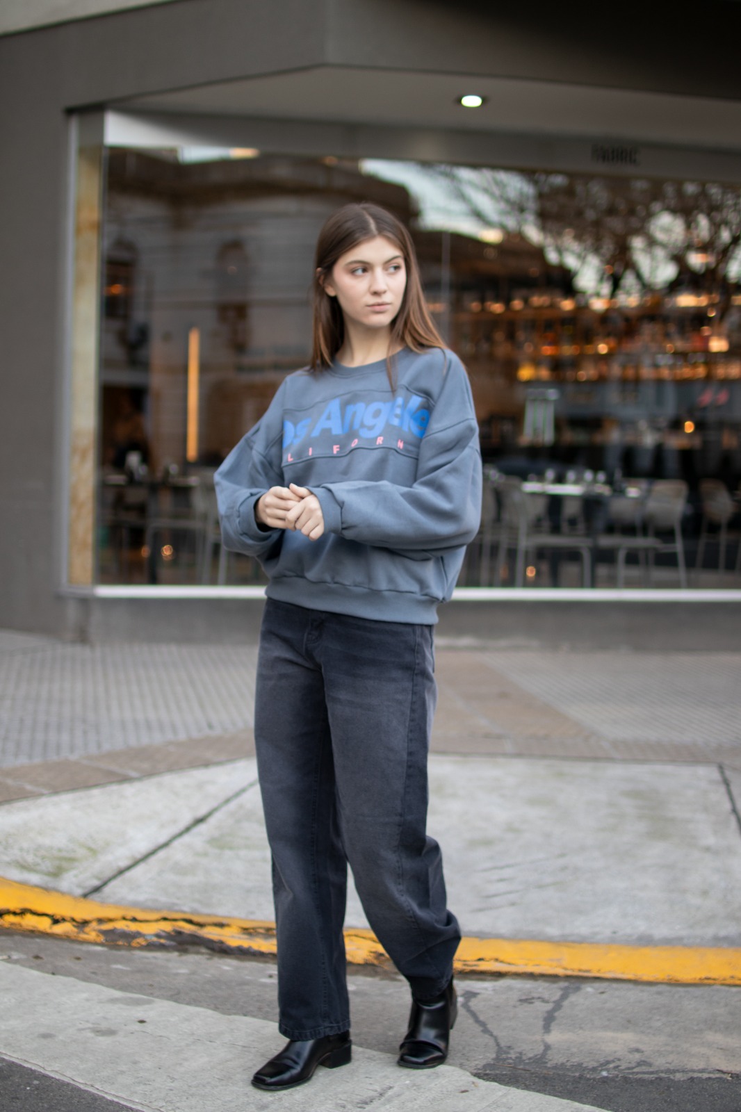Detalle: Buzo oversize frisado con estampa y costura delantera (OVERSIZE)