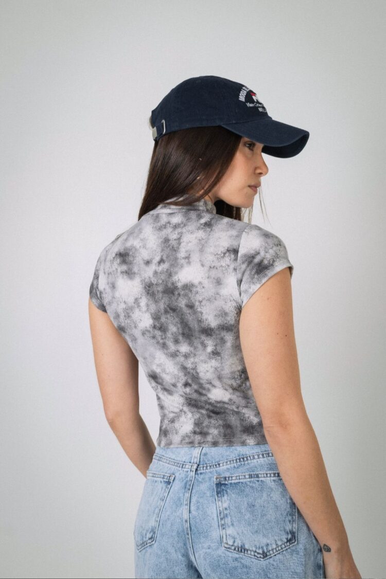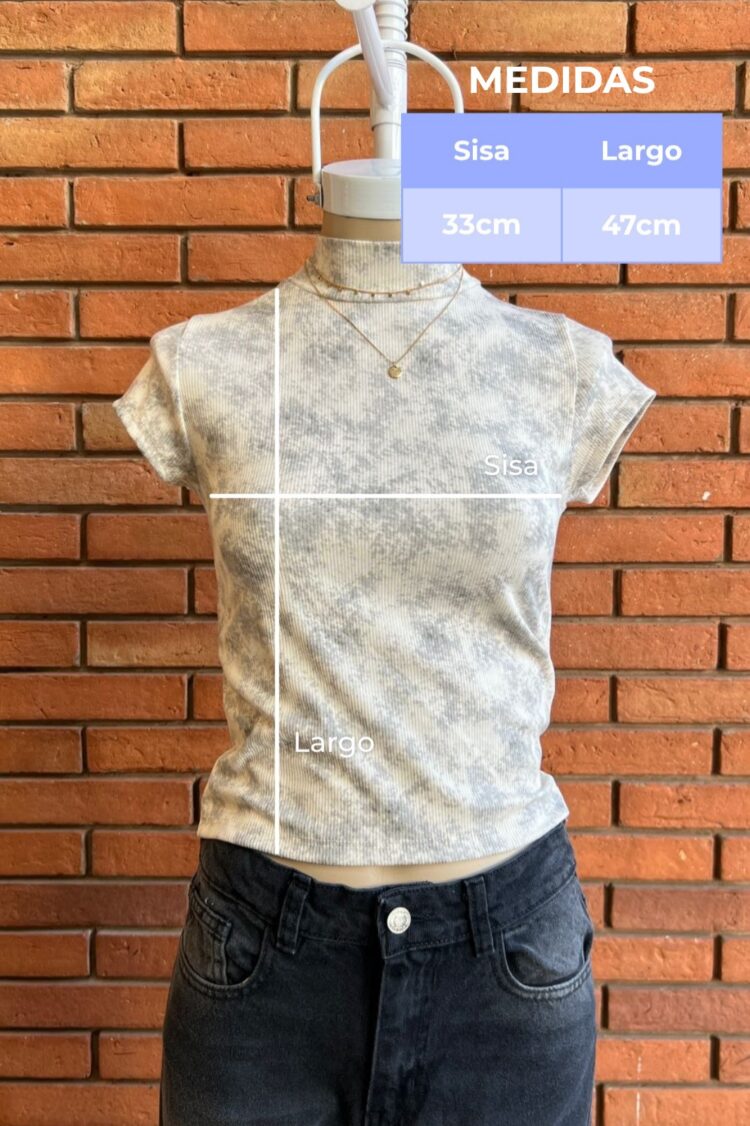 Descripcion: Remera manga corta y cuello alto de morley estampado