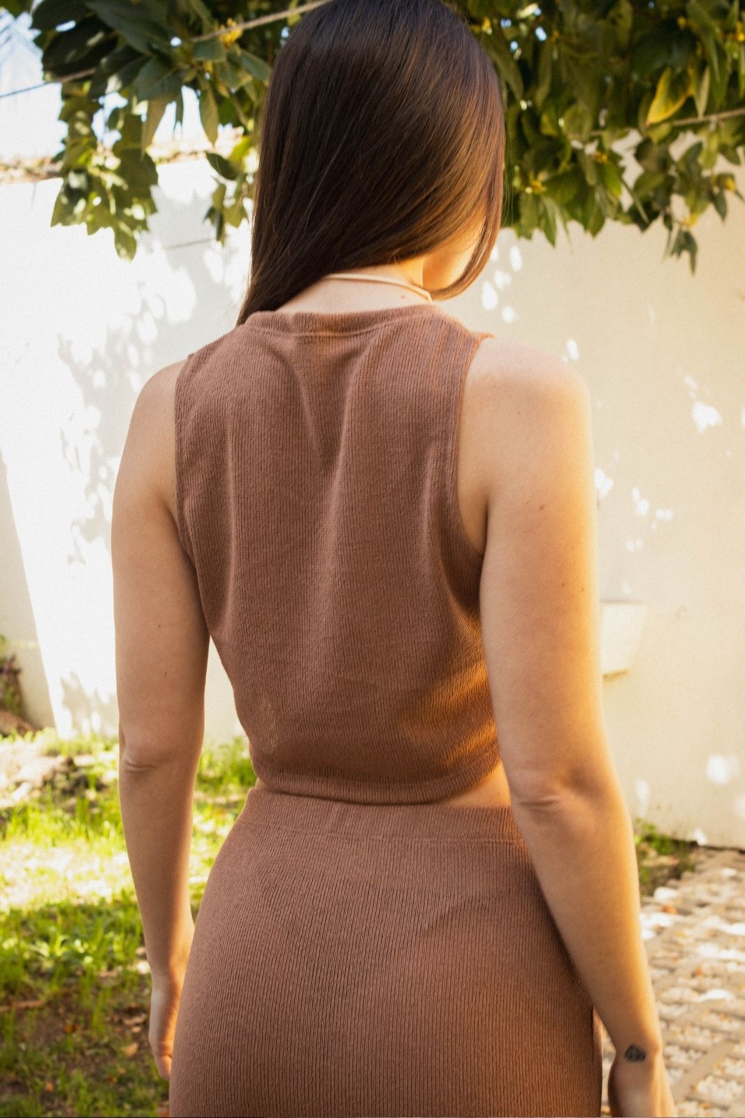 Descripción: Musculosa tejida de torso corto y breteles anchos